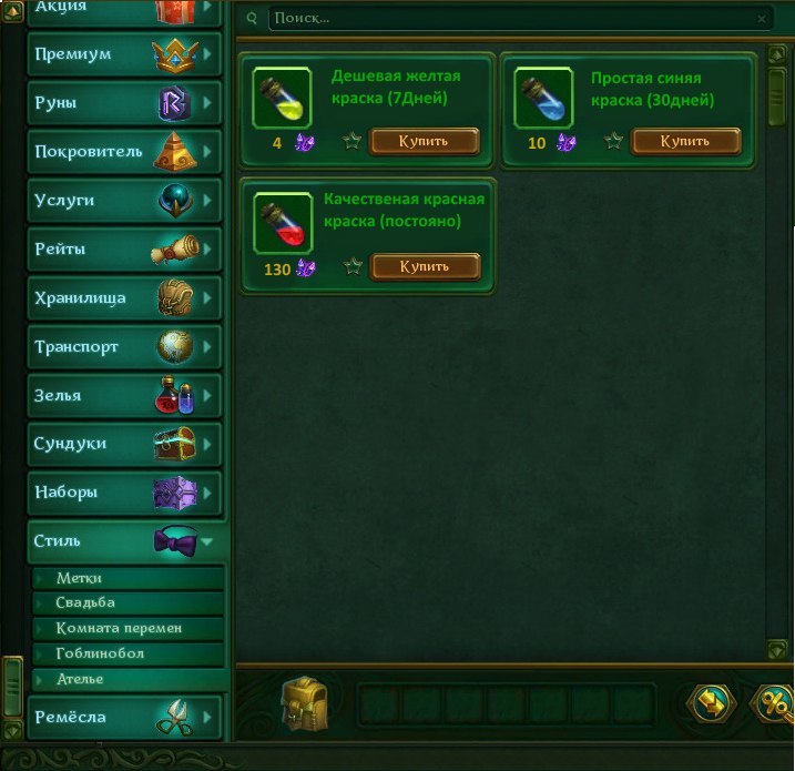 Для покраски самих костюмов я предлагаю добавить флаконы красок в лавку редкости.