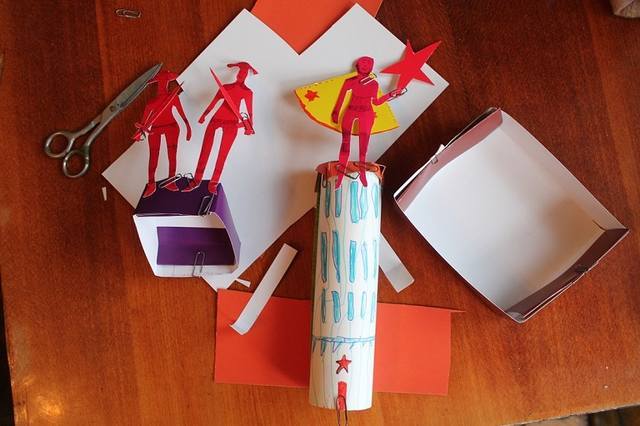Материалы: спички (детям не игрушка!), палочки от мороженого, зубочистки, деревянные кубики, тонкий картон, самозастывающая полимерная глина (труба), акварельные краски, фломастеры, макетные ножи и пилочки для ногтей.