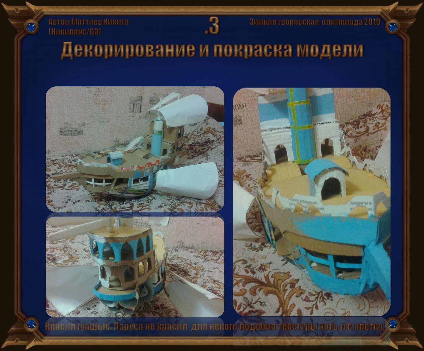Дворец Галеон из глины! Очень старалась). Использовала глину для лепки, краски гуашь, шпатлёвку.