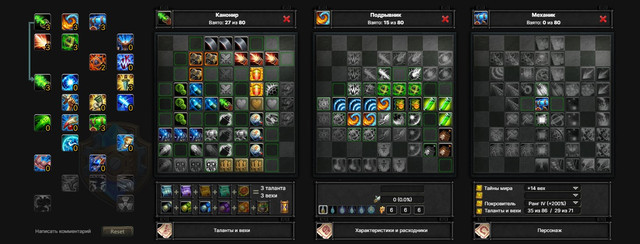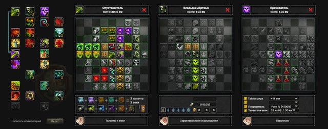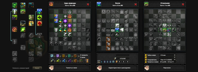 Далее качаем “Опутывающие корни”, однако нам они пока не нужны, это инвестиция в будущий АоЕ-урон. Ротация на ближайшие 10 уровней – “Осиный рой”-спамим “Ядовитая лоза”, пока не спадет дебафф умения “Осиный рой” и так по кругу. К 21-у уровню у нас будет такой билд. Начинаем с “Духовная связь” на 3-й странице вех, т.к. это наш реген маны. “Осиный рой” дебафают врага и бафают нас.