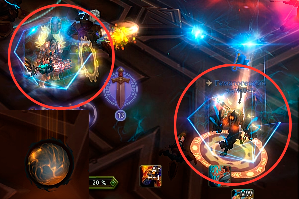 Каст умения “Разрыв тьмы” по истечению каста на карте появляется портал во тьму, а также под игроками появляются круги, из которых следует выходить.
