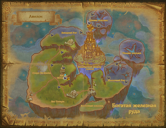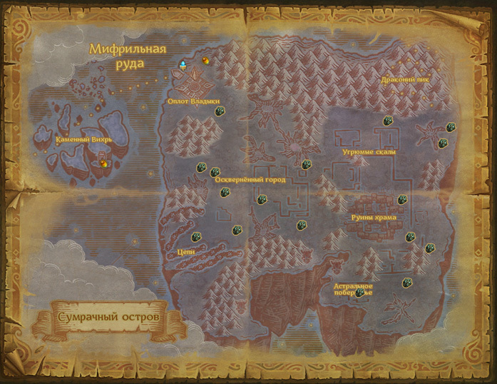Локации: Осколок Гипата, Кирах, Остров Откровения, Сумрачный остров, Фронтир, Блуждающий остров;
