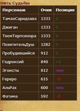 * ПсиххОдиночка (Авангард), СаняМодерн (Вечный Зов), Витариусс,Импортес,Амстра (все — Грань Мироздания), ТамаоСаридзава (Нить Судьбы), ПЫЦЫК, МетлаМетёт (оба — Сердце Войны), ТемныиРыцарь (Сумерки Богов) стали двукратными чемпионами! Поздравляем с этим замечательным достижением! А первым двухкратным чемпионом, напомним, в свое время стал ФайнСтори с сервера Вечный Зов.