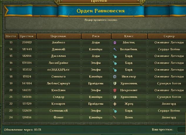 Последним хотфиксом изменили количество получаемого престижа с астральной охоты, возможно на следующий микро-сезон это даст свои плоды, но на данный момент случился сильный перекос по рейтингу, хотя охота дает абсолютно ровные шансы получить место в первых строчках рейтинга ордена. Но теперь существует огромная проблема с набором престижа на царстве стихий, а именно всем прекрасно известно про механику паков , когда при убийстве моба , остальные восстанавливают здоровья. На момент ввода данной механики она была актуальна и работала, она не позволяла топ-игрокам сутками фармить золото и нарушать баланс экономики. Сейчас же остро встала проблема, когда способности некоторых классов позволяют игнорировать отхил , снося пачку мощной аое атакой. Все мы прекрасно знаем про воина , мага , инженера. Сегодня в ордене равновесия рейты на цс и было очень больно наблюдать, когда я своим паладином с утра до вечера ковыряю по мобу в 10 секунд, как ребята с нужными классами набирают по 10-20 тысяч престижа в час особо не напрягаясь.