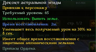 Для того что бы сократить получаемый по себе урон (деф) можно выпить декокт астральной эгиды.