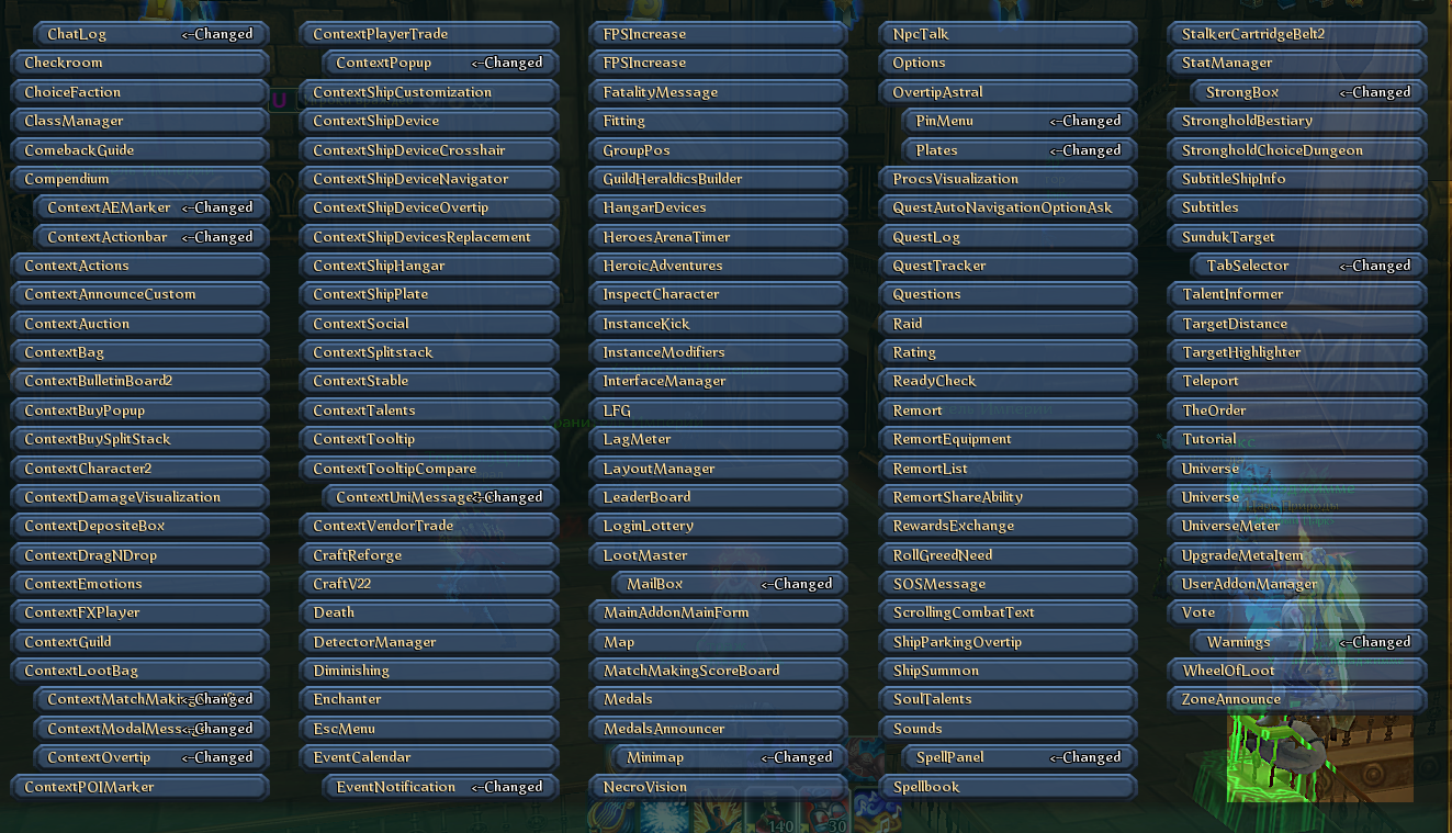 О каких аддонах я говорю, которые очень полезные, но не всегда работают корректно\полноценно: Interface Manager (для персонализации интерфейса - божественная вещь, но давно не поддерживается и подавляющую часть возможностей реализовать по-человечески невозможно), AO Pack Zeon (половина функционала не работает, вторая работает частично некорректно, создает более удобочитаемые плахи над всеми персонажами, включает в себя гибко настраиваемый баф манагер и др), Alchemy Helper (не то чтобы не работал, но разработчики могли бы сделать более красивый и достойный аналог; хотя с учетом того, что профессии вроде бы собираются переделывать, думаю придется полностью новый аддон делать для этих целей), AOPanel (можно было бы создать плашку с более гибкими настройками и возможностями, в принципе-то это полезная вещь, но гибкость настроек и возможностей у нее на уровне сухого стручка), Аддоны-таргетеры или сканеры фокуса (сейчас каждый из таких аддонов в той или иной степени просто дырявый), Power Auras (отслеживание бафов, дебафов, кулдаунов, вроде бы в нем нечему ломаться, но не хватает гибкости настроек, заниматься аддоном некому).