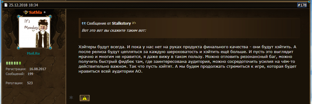 "то, что вы платите сейчас уходит как раз на то, что выпускается в апдейтах" " (c) Sathla, продюсер АО