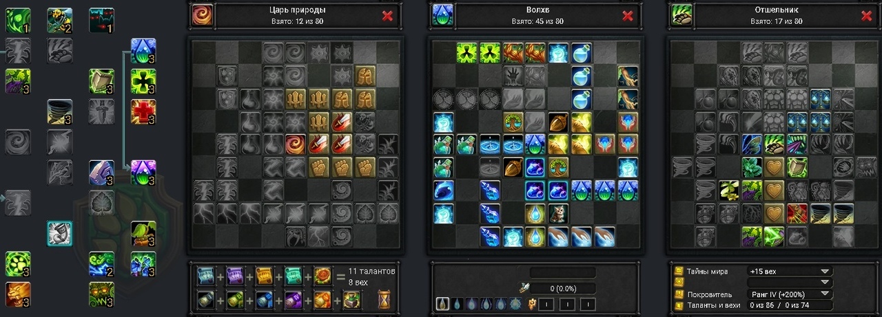 Эммм не взять Единение которое так же хилит как и Туман, и к нему же не взять вехи Триединство. Зато взять бесполезный Древесный сок, который теперь вещается только на Язычника а не на всю пати как раньше из за механики работы Древесной коры.