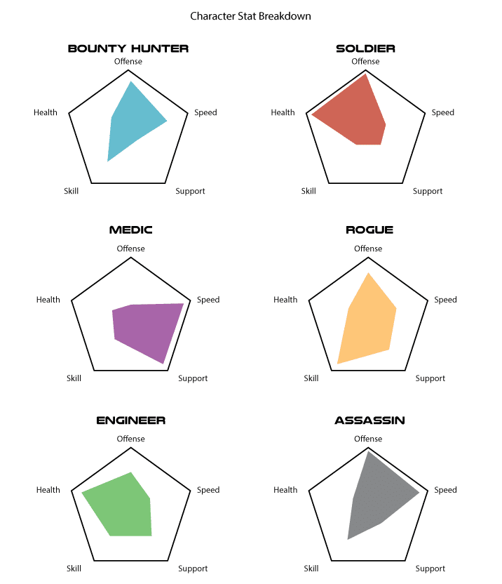 Базовый дамаг, базовый самохил для соло активностей должны быть, наверное у всех, и примерно одинаковым. Взаимные пассивные усиления классов для тактической игры в подбор пачек было бы интересно.