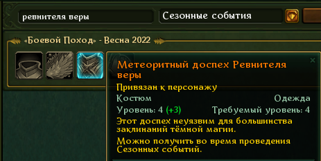Облачение Ревнителя Веры из "Боевого Похода Весны 2022" назывался Метеоритный доспех Ревнителя веры, название то другое было у костюма.