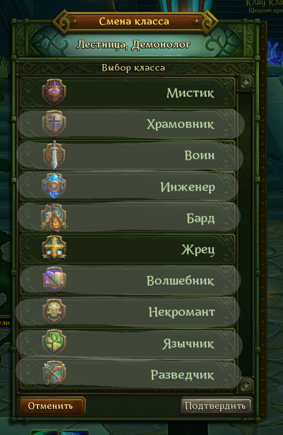 - Открытые классы общие для прародителя и его воплощений, каждый может поменять класс только на открытые и на свой сохраненный: т.е. если условно прародитель друид, перерождение жрец, а открытый класс - воин, то прародитель через душу творца может поменять класс только на воина, и вернуться на друида через наставника класса, а перерождение жрец может также поменять класс на воина и через наставника вернуться на жреца.