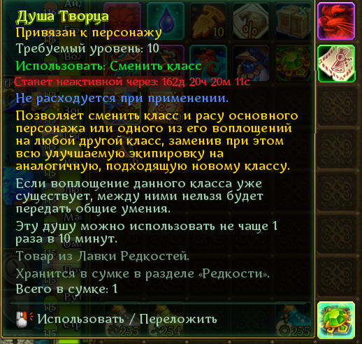 - Для купленных "душ творца" за 10к ЗоЗов также давать активацию для новой "души творца" сроком уже существующей души, а также дать "усиленный полный доступ ко всем классам" на такой же срок.
