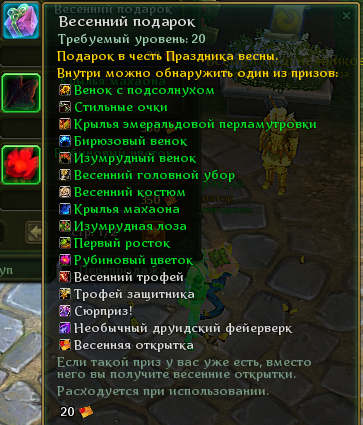 Этой весной изменятся не только награды! Теперь, запустив «Необычный друидский фейерверк» рядом с другими игроками во время Праздника Весны, вы будете получать Весеннюю открытку, причём чем больше участников окажется поблизости, тем выше шанс получить дополнительную.