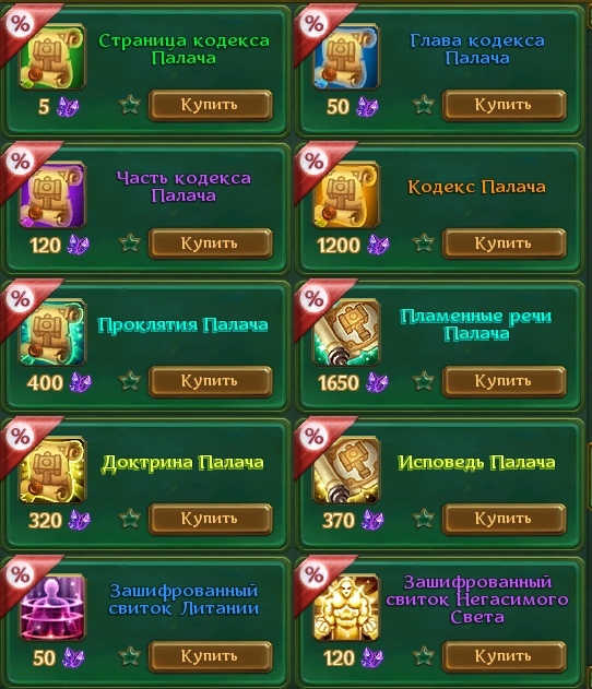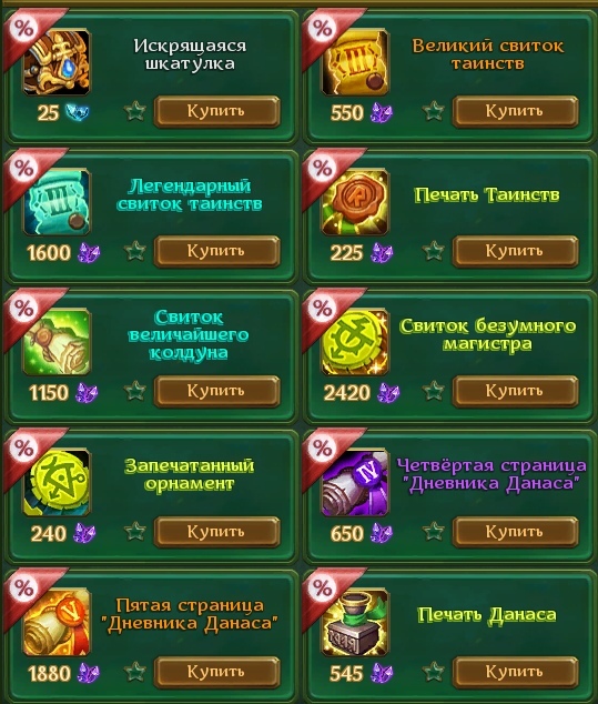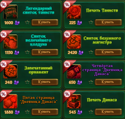 Это описание касается предметов из ларцов (готовые свитки страницы и пр.), добавленных во вкладку "Акция".