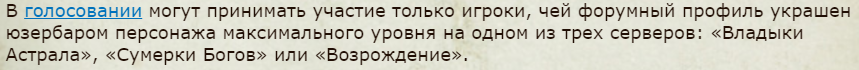 То что голосовать было нельзя с других серверов это понятно, но предложить название мог любой, конкурс на название сервера был для всех, вот я и оставил название "Наследие богов" потом он попал в 10 ку и выбирали уже его люди из 3 серверов) Моей ошибки тут нет,читать я тоже умею )Странно что победителя не назвали но награду кто то уже получил ))