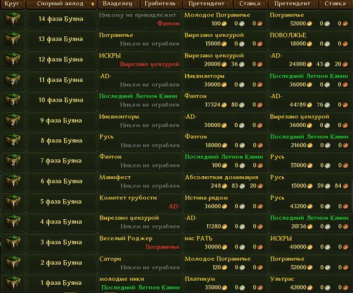 -Погранцы удачно делают ставки на 2 фазы (14-пустой, 2-Сатори), без заветного реальгара не останутся но смогут ли зафармить?, попутно на их старый остров (13) идут Вц и ПОВОЛЖЬЕ,. Хто это за 2-рая гильдия? Новый конкурент на АП? Надеемся што это так.