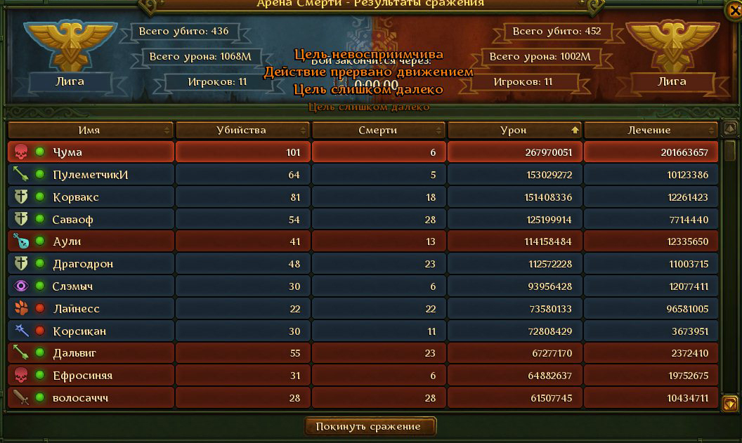 п.с. Только у 10 игроков количество килов превышает количество смертей.Остальные летали как листья по арене. Надо отдать должное Ченгизхану. Очень упорный враг, когда его слили в десятый раз, я думала он бросит всё и свалит. Но нет. Увы. Он бился до конца и лишил нас вкусняшек.