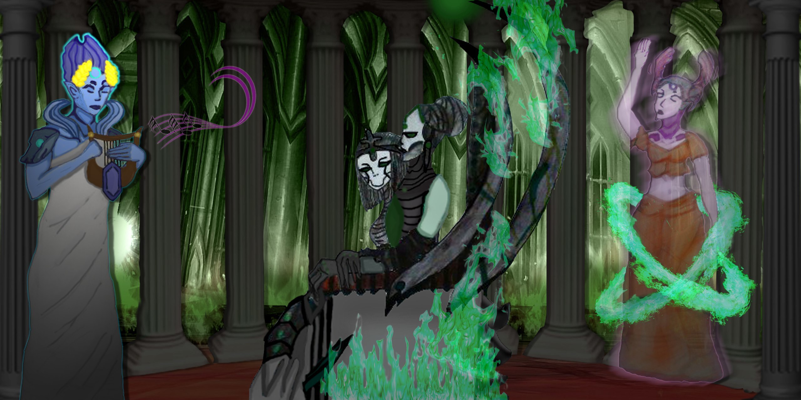 (Простите за оффтоп. Так уж вышло, что по техническим причинам не смогла достойно закончить работу .. Но принять участие в конкурсе очень хотелось. Поэтому, не укладываясь в сроки, пришлось использовать в качестве заднего фона скриншот. Сама же аэда - Артемида полностью нарисована, это не обработка скриншота))