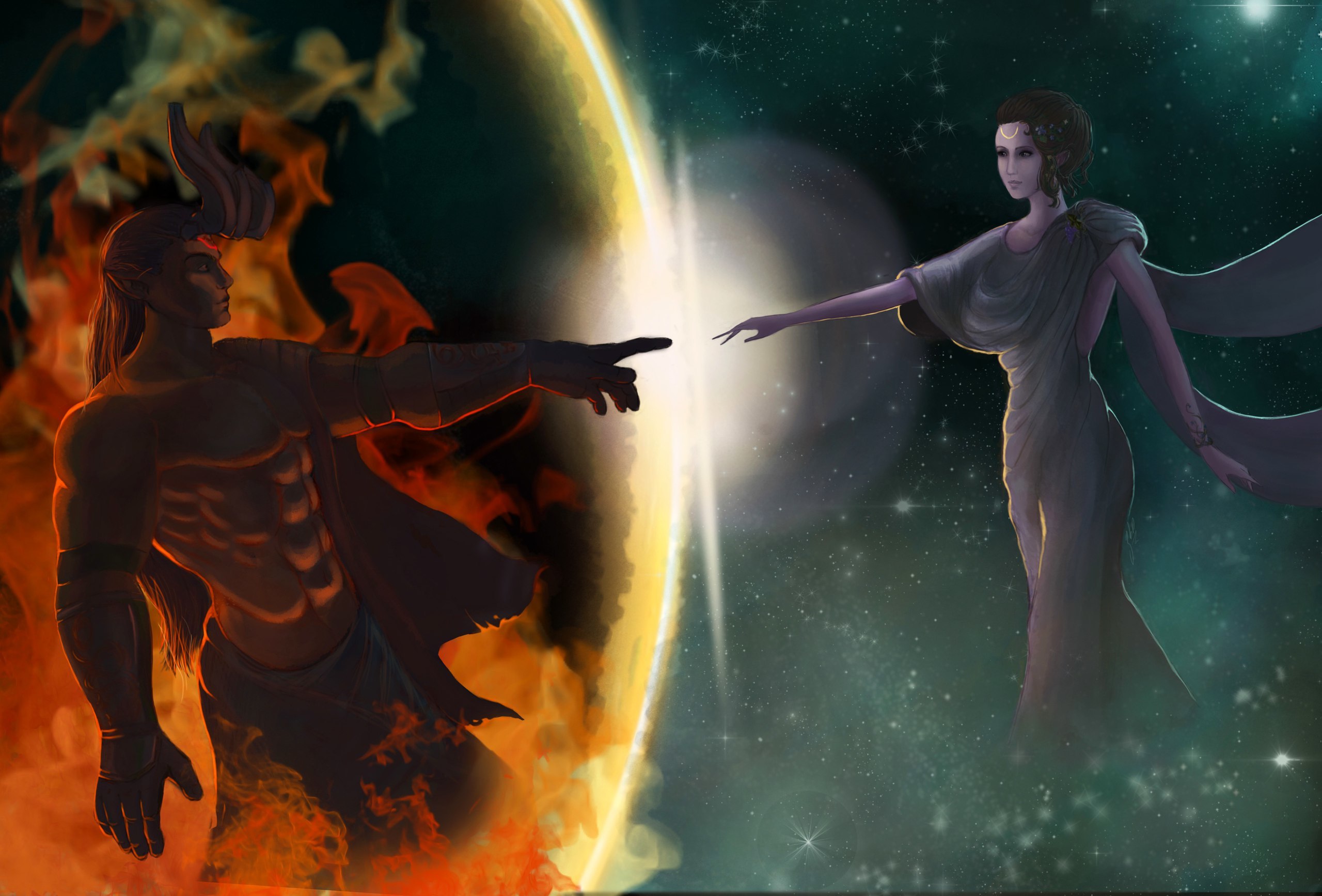 Столкнулись в великой битве Сарн и Архитектор, сплелись две великие силы, уничтожая друг друга, и в спышке мощи и разрушения родилась Афродита. Стихли громовые раскаты, улеглась пыль,и сотканая из золотых нитей света и прекрасного камня спустилась на земли Сарнаута юнная и прекрасная богиня любви и юности.