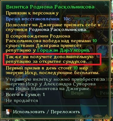 Визитка Родиона Раскольникова не дает репутацию Дар-Улгорна за открытие сундуков