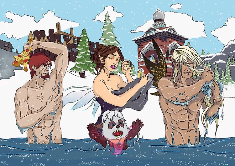 В Сарнауте наступило утро. Солнце, тёплыми лучами, стуча в окно, ласково будило соню гибберлинга. Приоткрыв глаза, Пакостник посмотрел на календарь, который ему, между прочим, подарил сам дядюшка Айденус. «19 января, сегодня же крещение», - подумал он, и резко встал с кровати. Разогрев рыбную похлёбку, он сел за стол, полностью освещаемый солнцем. Но не успел он доесть и половины, как раздался громкий стук. Дверь распахнулась и на пороге оказался Беннет, старый друг хомяка. «Пойдём быстрее, - сказал он, махая руками и зовя за собой, - у нас в Сиверии скоро купания начнутся, там эта…ну эта, - закатил он глаза и взялся за сердце, - там Негодница будет». Пакостник, долго не думая, встал, забыв о недоеденном завтраке, и мигом начал собираться. Надев тулуп, он быстро забежал в гардероб, ведь забыл самое главное – свои парадно-выходные труселя с сердечками, которыми, старый прохвост, хотел удивить Негодницу.