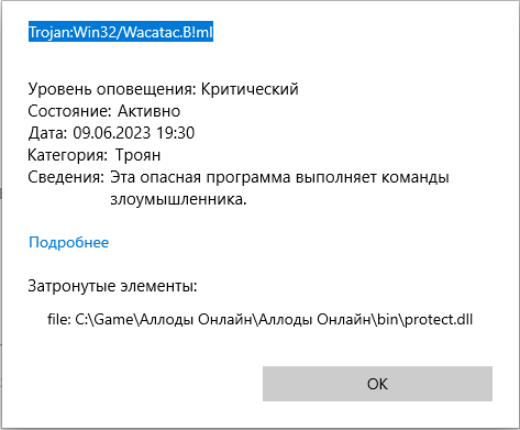 Тоже видит троян, сносит его и просит скачать игру, хотя она не удаленная в папке лежит. Причем в 14:00 заходила в игру, после обновы, и было все нормально. Эта проблема сейчас возникла. А в техподдержку писать лениво(