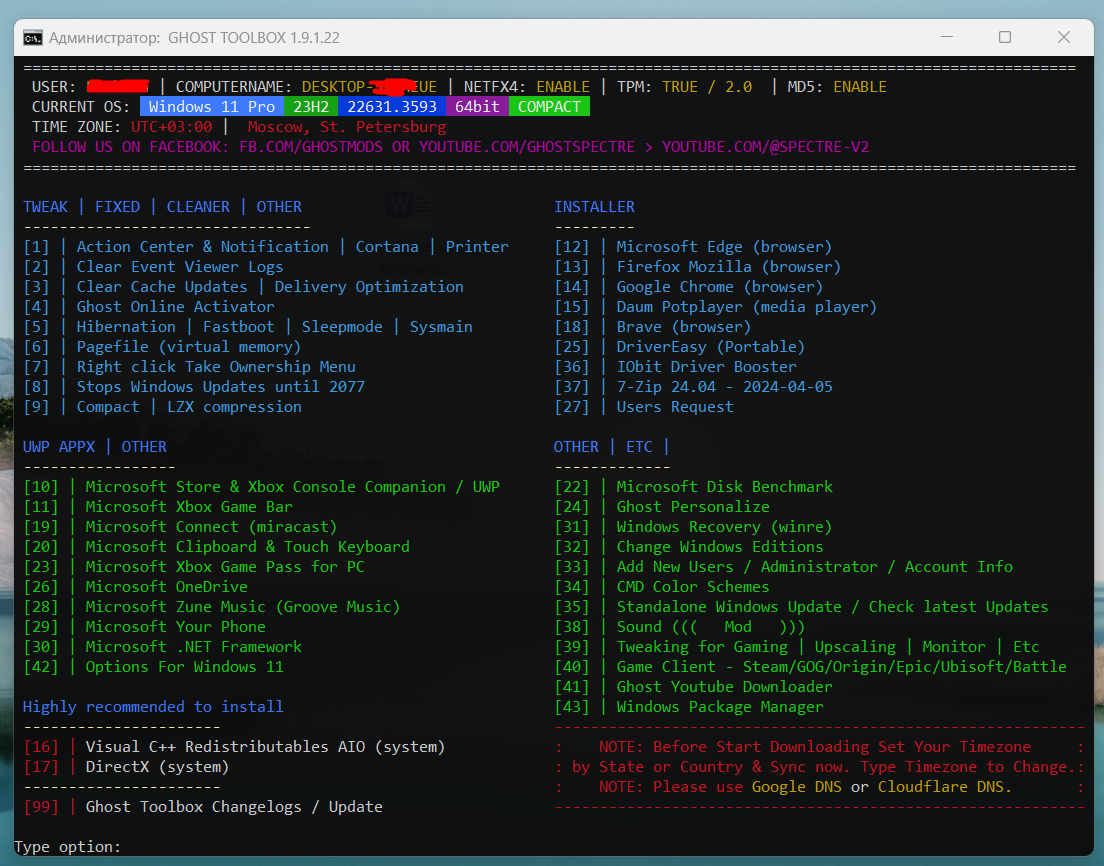 Проблема с крашем решается, когда устанавливаешь сборку Windows от GhostSpectre. Эта версия операционной системы настолько облегчённая, что для установки DirectX и NetFramework приходится использовать адаптированную командную строку (консоль).