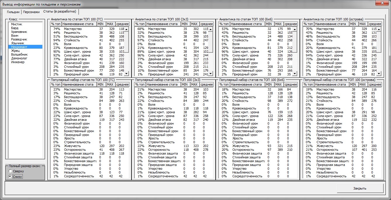 То есть у "топ 10 "нужный класс" в 3х3" какой-то-стат сейчас ни разу не соответствует тому, с которым он ходил в 3х3. Или наоборот "топ 10 "нужный класс" в компасах" ни разу не соответствует. Нет никакой точки опоры, чтобы даже примерно отследить динамику изменения статов.