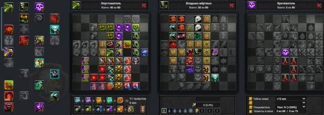1. Можно отказаться от Тёмная мощь в 3 и Лихорадка в 3 (т.к. при использовании Душегубки, будет у вас Тёмная мощь в 2 или в 3 разницы большой не сыграет, а Лихорадка не имеет большого дпса и мы теряем не так много.