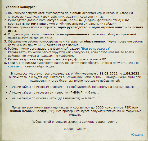 Награда каждому автору вышеуказанных гайдов составит 3 000 кристаллов или Знаков Особых Заслуг.