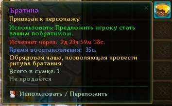 Процесс братания довольно прост. Всё, что требуется — братина с медовым напитком, из которой следует предложить испить своему другу. Если получено согласие, персонажей скрепят ритуальные узы дружбы. Братину можно приобрести в столице своей фракции, у Семейки Неразлучных в Лиге или у Неразлея Закадычных в Империи. Стоимость напитка зависит от уровня персонажа, который хочет ее приобрести. Чем ниже ваш уровень, тем дешевле братина.