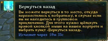 В течение часа после совершения телепорта можно вернуться обратно в то место, откуда было совершено перемещение. Чтобы сделать это, нужно нажать правой кнопкой мыши на свой портрет и выбрать пункт «Вернуться».